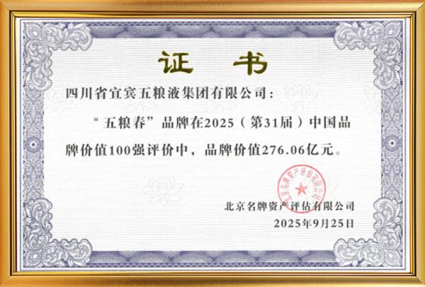 • 五糧春、五糧醇強勢登錄2025中國品牌價值100強